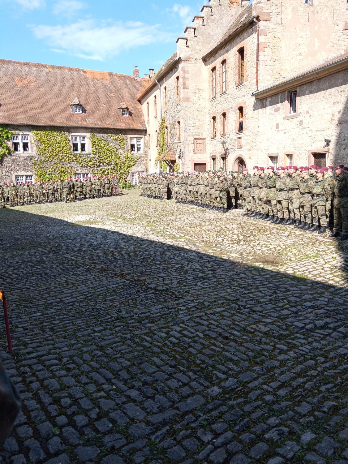 Am Donnerstag, den 18.04.24 wurde unserem Sohn Oberfähnrich M.A. Nick Janitschke (Angehöriger der Fallschirmjägertruppe) nach erfolgreich absolviertem Fahnenjunker-Lehrgang an der Infanterieschule Hammelburg/Bayern der Offizierbrief offiziell im Rahmen eines Appells übergeben.Natürlich war es uns als Eltern und seiner Freundin Tabea eine Pflicht und Ehre an dieser erwührdigen Veranstaltung teilzunehmen!